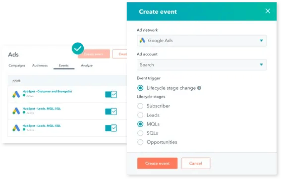 Utilise comprehensive data that extends beyond clicks and initial lead enquiry stages to make a more informed budget and bid decision-making. Improve bids by using HubSpot Ad Events to record sales cycle stage changes as offline conversions, ensuring your budget is directed towards high-quality leads and impactful campaigns. Maximise ROI by leveraging HubSpot’s analytics to strategically optimise ad spend.